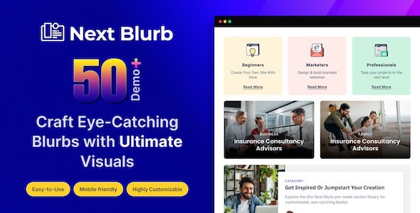 Divi Next Blurb is a specialized WordPress plugin designed to significantly enhance the visual appeal and interactive capabilities of Divi websites by providing an advanced solution for creating and managing blurbs. This powerful tool empowers users to move beyond the standard blurb functionalities, offering extensive customization options for styles, animations, and layouts. Its core purpose is to enable the effortless creation of stunning, dynamic, and interactive content blocks that capture user attention and elevate the overall user experience, all while maintaining seamless integration within the familiar Divi ecosystem.